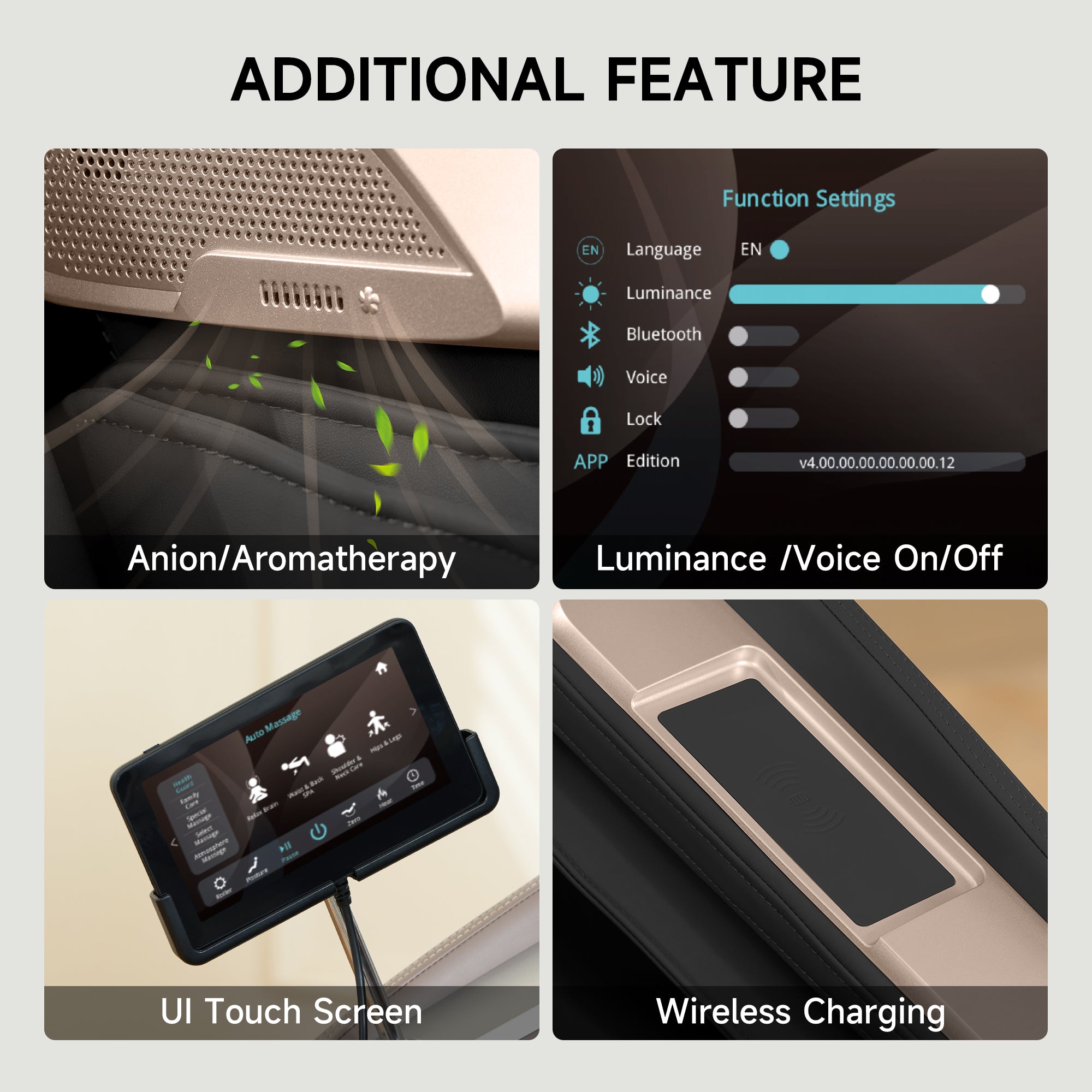 Aromatherapy and anion functions, adding a calming atmosphere
