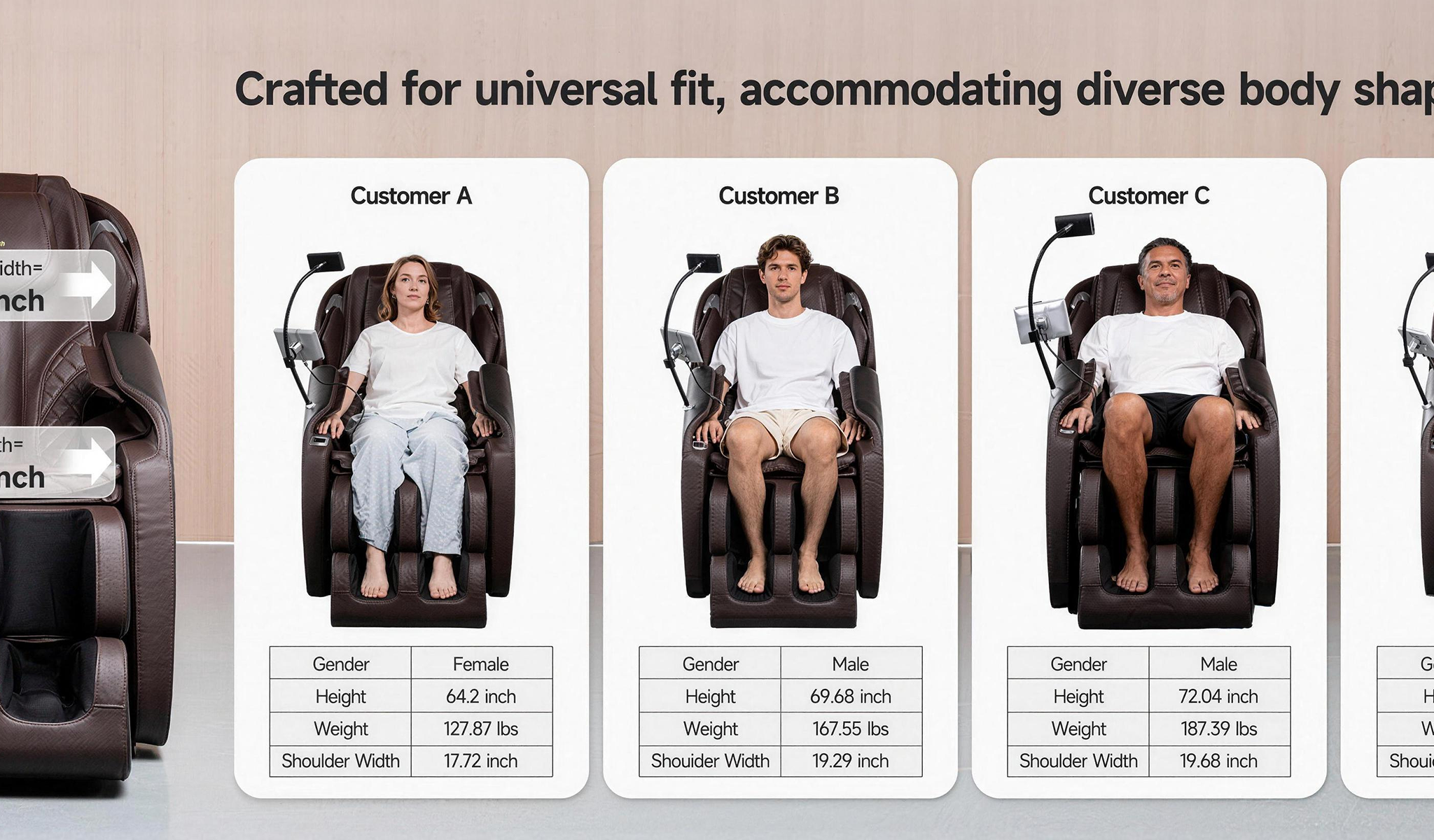 Our extended SL-track spans from neck to hips, delivering consistent, soothing pressure along your entire spine for a seamless full-back massage experience.