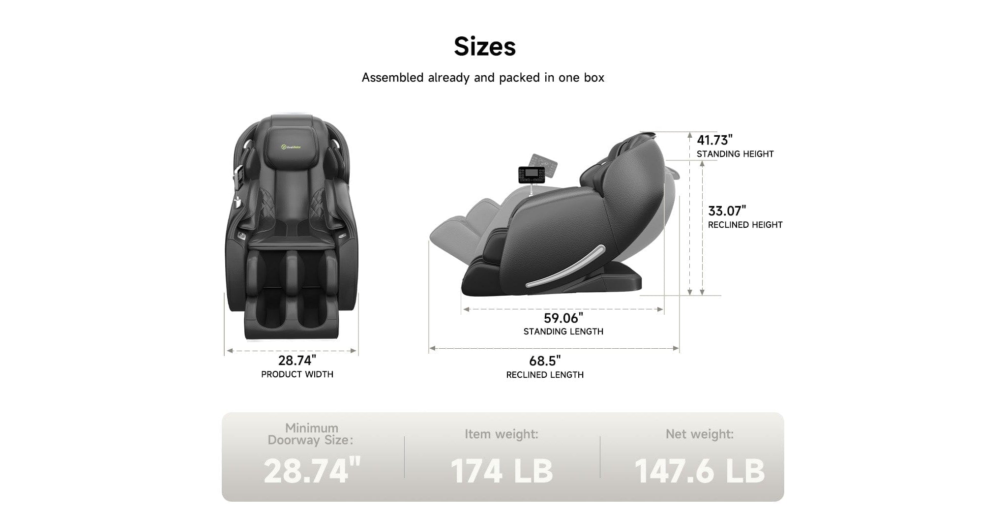 | Recline Dimensions | 68.50" depth*28.74" width*33.07" height |